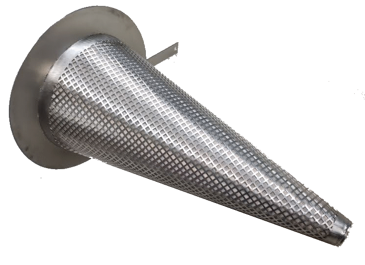 Spitzsiebe in Kegelform (auch Anfahrsieb oder Hutsieb genannt) fertigen wir in den Größen DN25 bis DN500 kurzfristig nach individuellem Bedarf. Die Flansche bis 2mm Dicke fertigen wir für alle Druckstufen in unserem Hause.